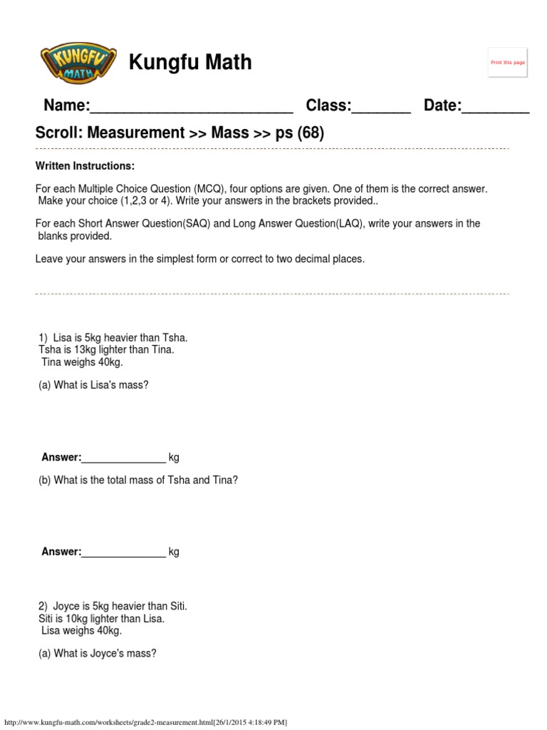 Singapore Math Worksheets Grade 2 Measurement | PDF ...